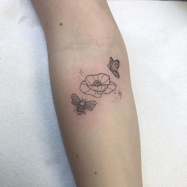 Jherelle Jay On Twitter Butterfly Poppy And A Bee Flower Tattoo Poppy Bee Butterfly Floraltattoo Finelines Tattoo Https T Co Zvxarqzl3c Https T Co Jta35guydd X