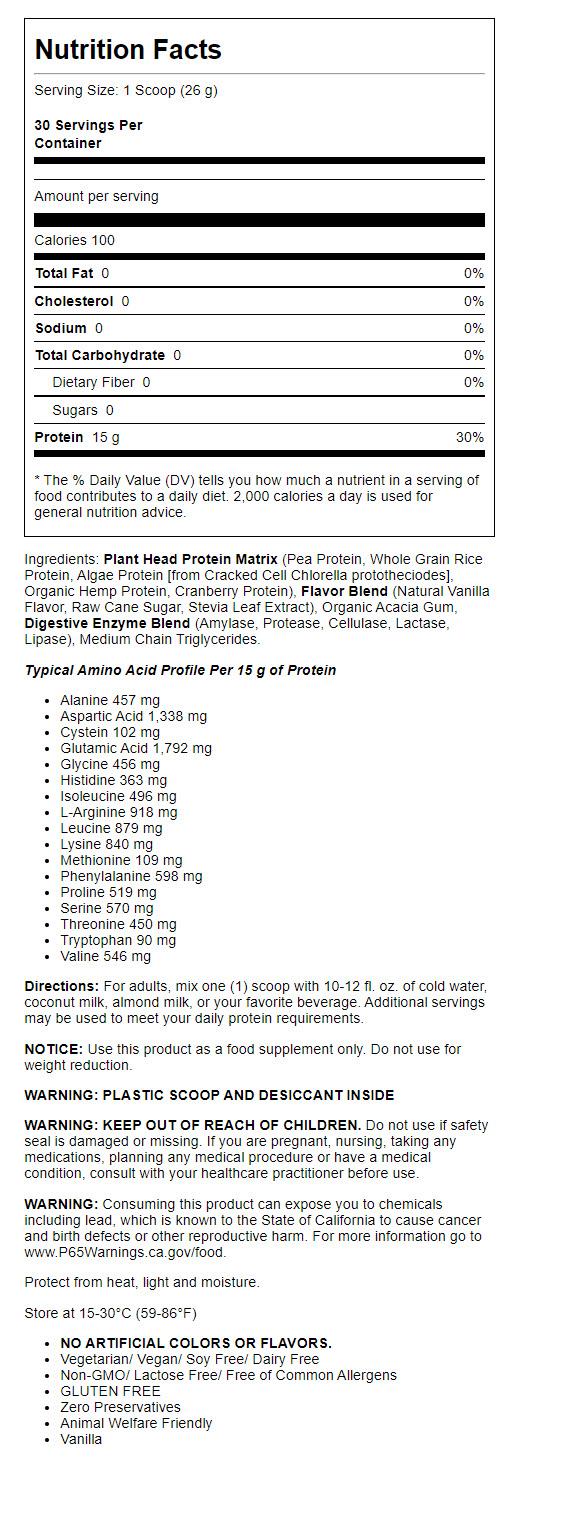 Plant Head Protein Vanilla 1 7 Lbs 780g Walmart Com